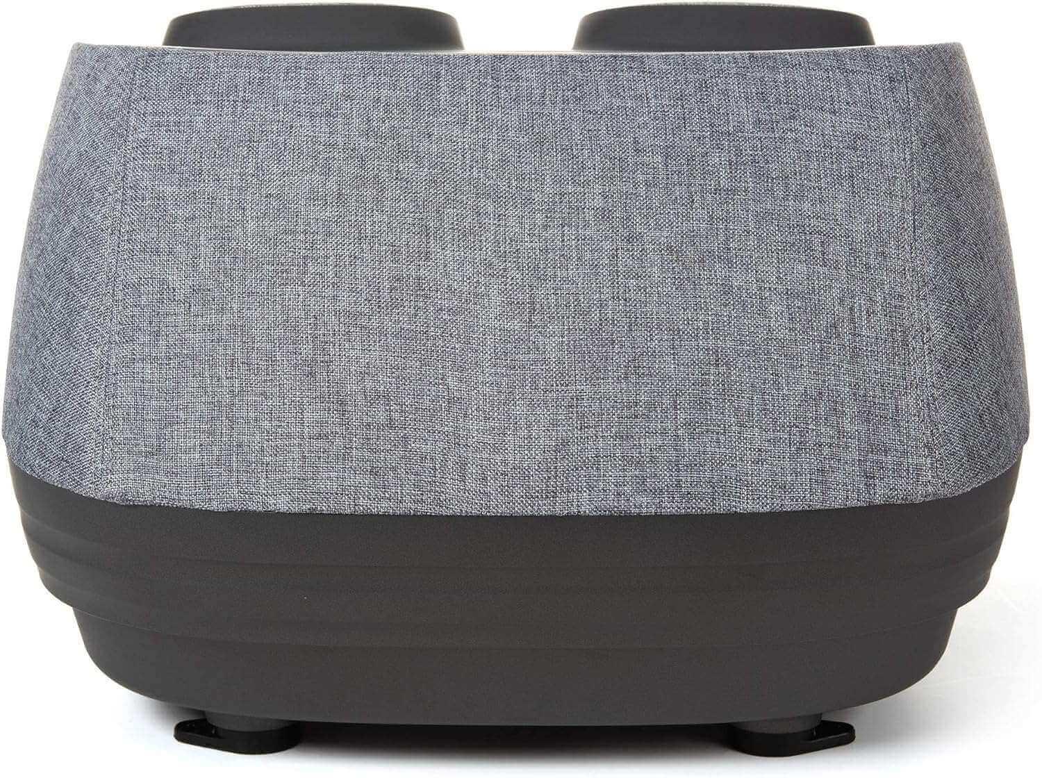 Elegant and Functional: This massager features a modern, sleek design with a relatively small footprint, making it suitable for both home and office environments. It's covered in a premium grade cotton-like grey fabric.