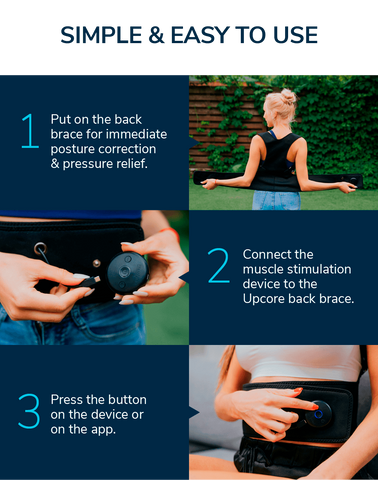 In only 23 minutes, UpCore stimulates the targeted muscles. It tones and strengthens your back and core. All you have to do is apply the device to the desired muscle, push the Start Button and let the workout out do its thing!