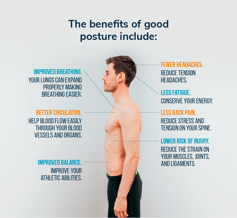 Adopting good posture makes you healthier. It improves your balance, and prevents back pains, injuries, headaches, fatigue, breathing, and your overall mood!
